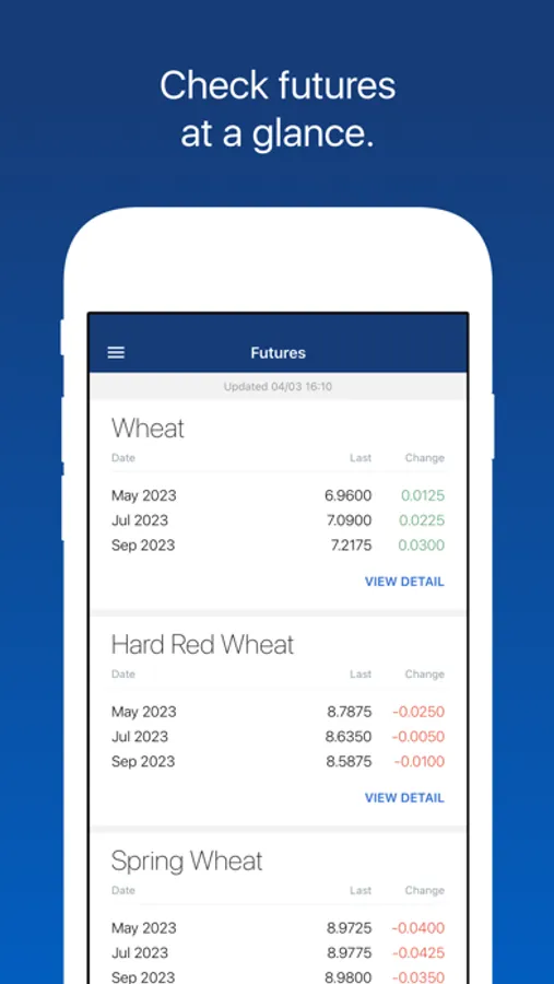 Futures: See Grains, Feed, Livestock, and Ethanol futures listed in order of your preference