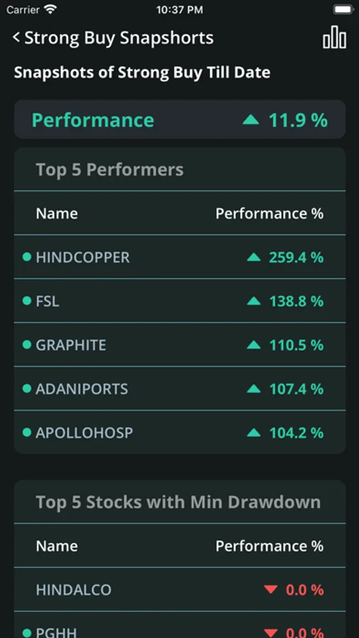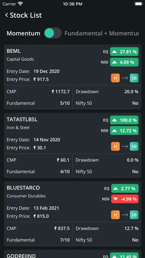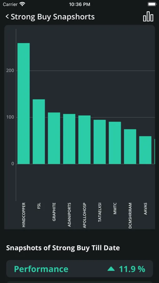 The Artificial Intelligence Bot runs through more than 200 indicators and 10 years of historical data of a stock to understand which Technical Indicators are working best or having the most success ratio.