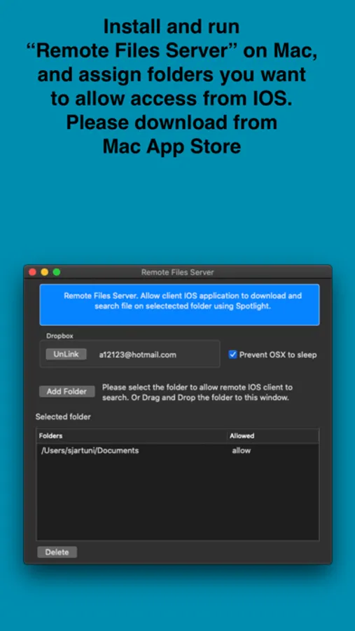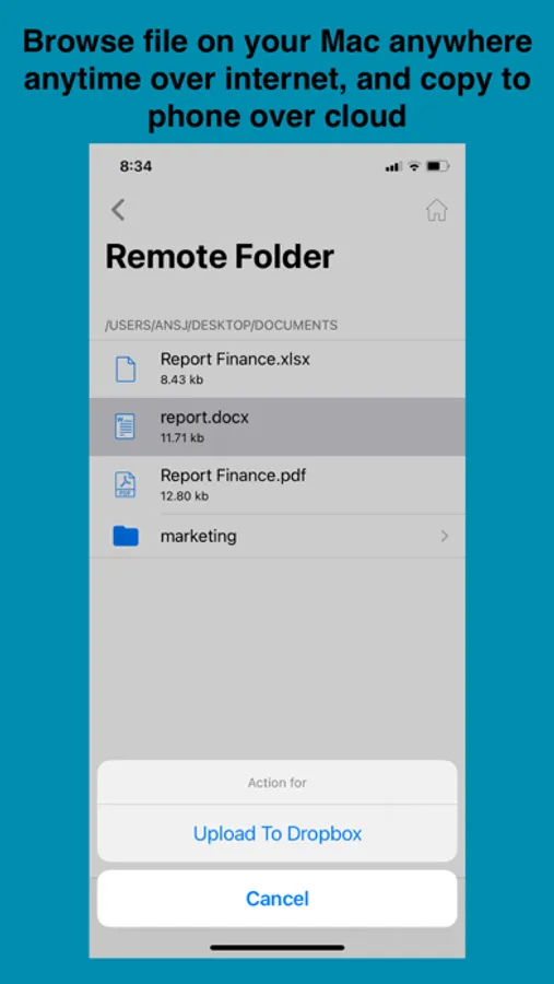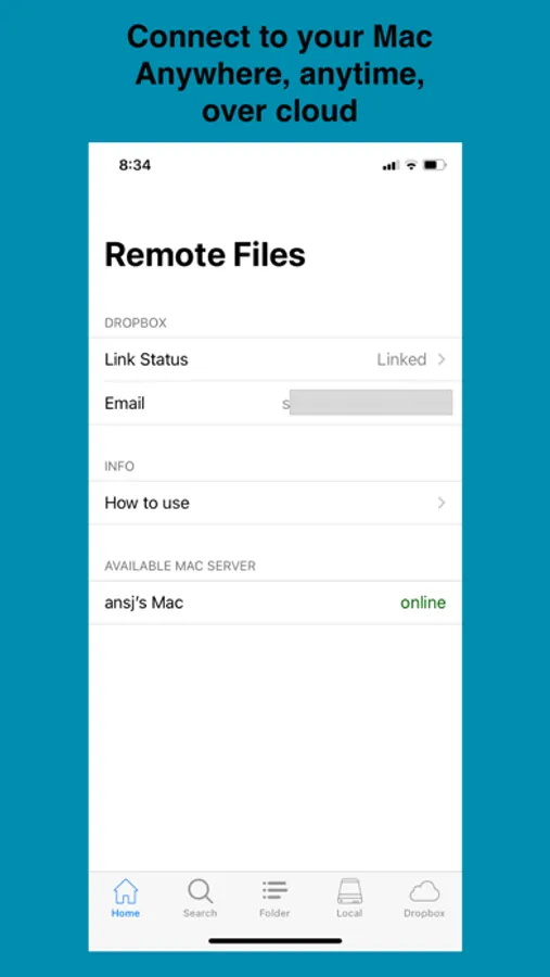 * Access your Mac files remotely from IOS over the cloud.