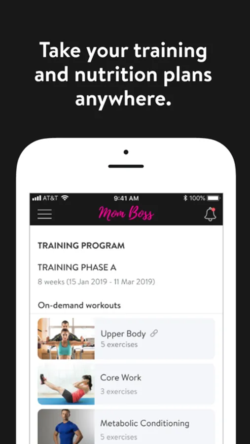 With the Mom Boss Workout App, you can start tracking your workouts and meals, measuring results, and achieving your fitness goals, all with the help of your personal trainer.