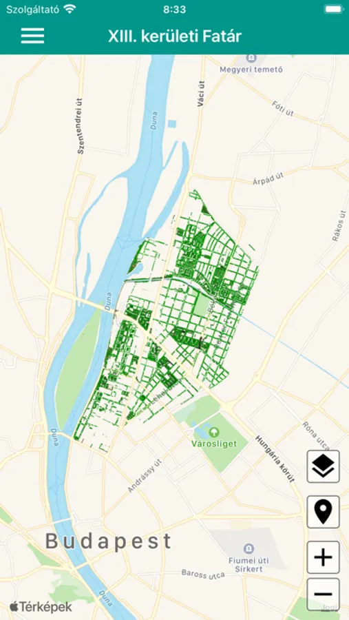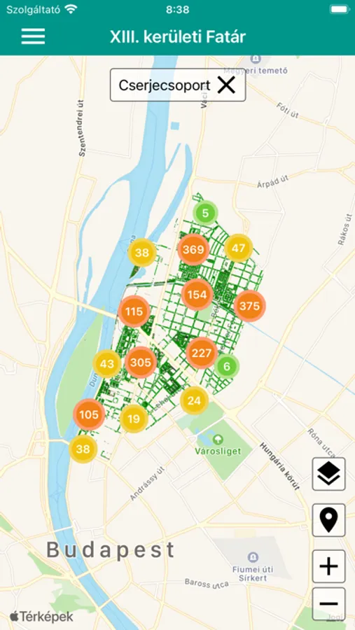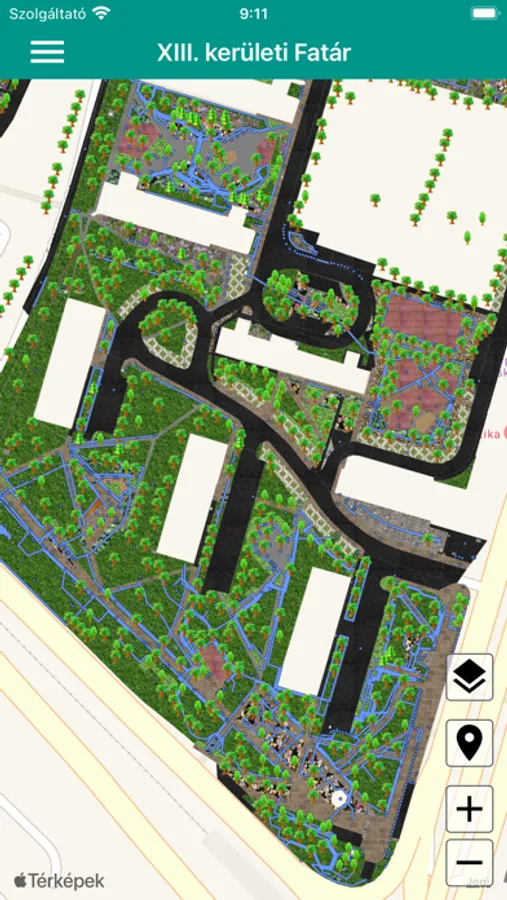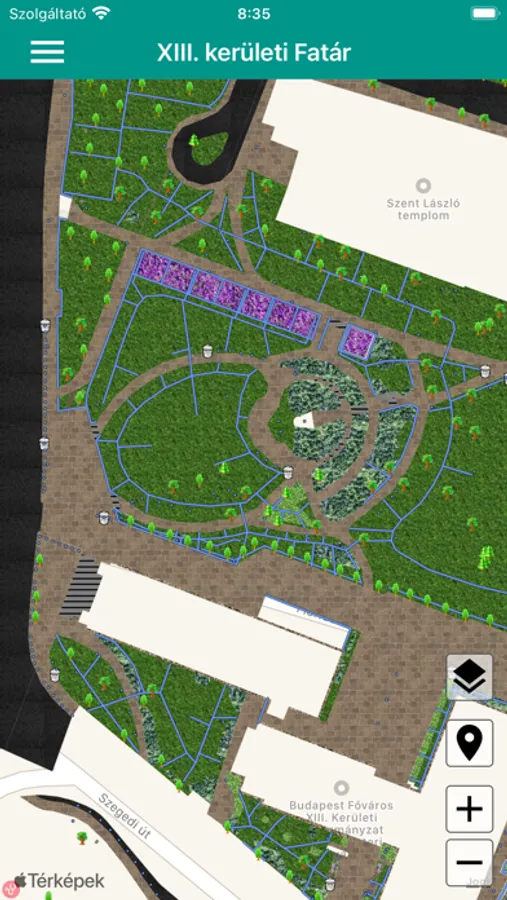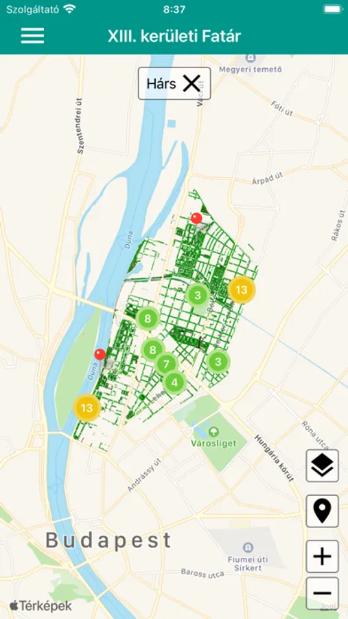 XIII. kerület Önkormányzatának hivatalos fa- és parkkataszteri alkalmazása.