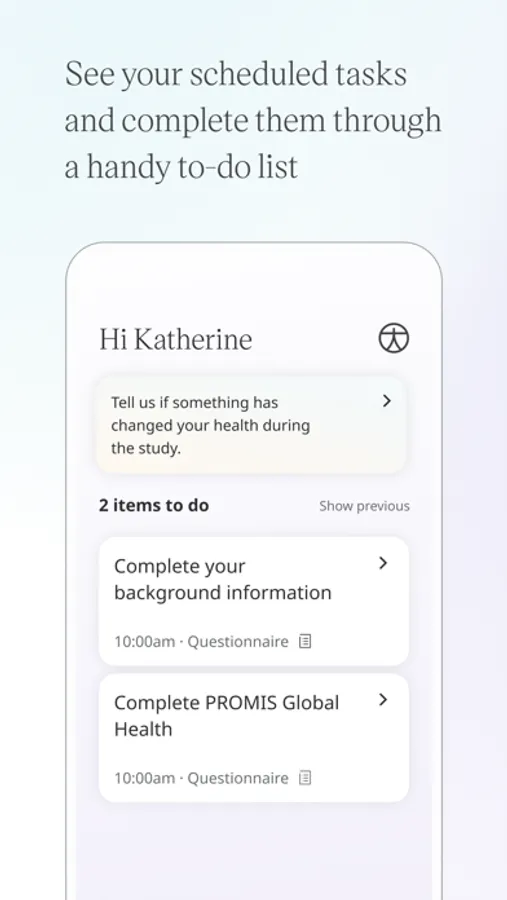 Huma Study is your health companion app and is configured especially for you. The app allows you to participate in clinical research by providing all the necessary tasks that are required from your study team. A research organisation needs to invite you in order to be eligible to start using the app.