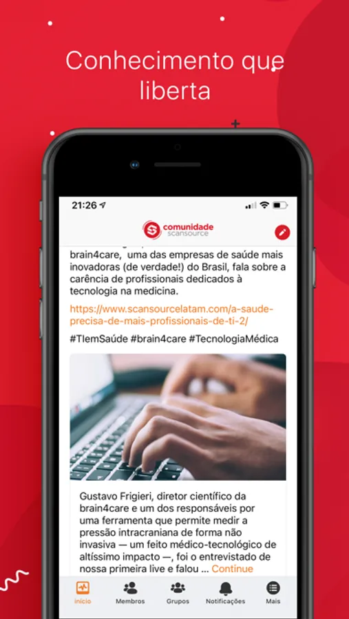 Através do aplicativo você tem acesso a uma rede social completa onde pode conferir os conteúdos exclusivos além de se conectar com outros profissionais e criar uma rede de networking ainda maior.