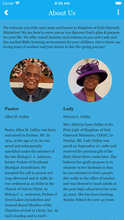 This app was designed for Kingdom of God Outreach Ministries. With this app you can do the following: