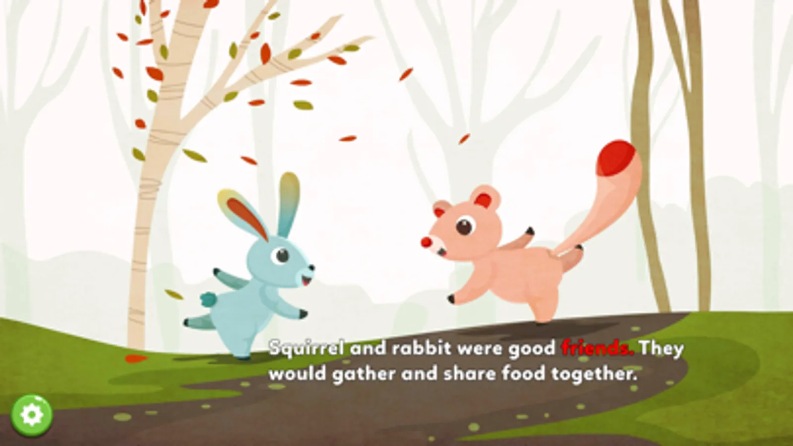 Squirrel and rabbit were good friends. They would gather and share food together.