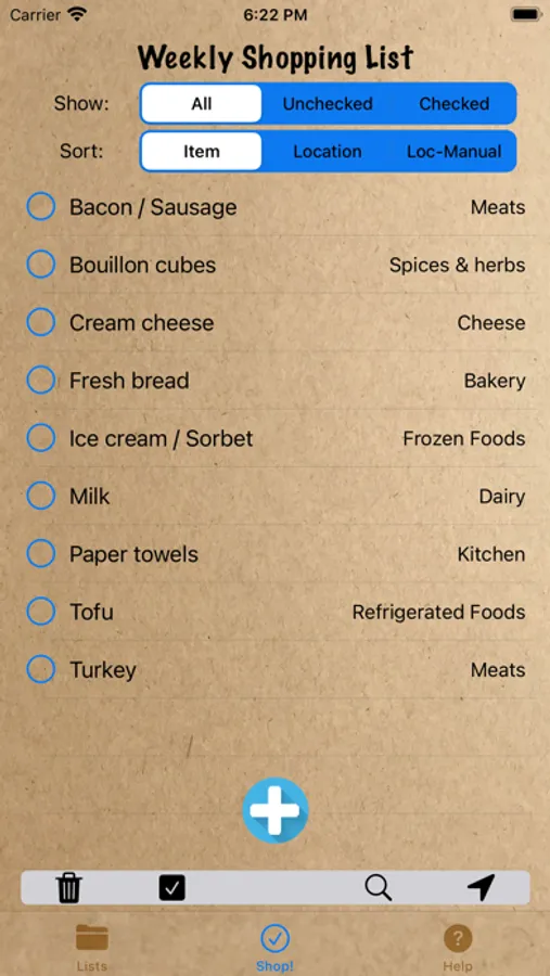 Create shopping lists with location-based sorting to help you travel the shortest path through your store and shorten your shopping time. Copy, merge, import, and share lists with ease. Maintain one or more item libraries, and create as many lists as you like. QuikShopper is free to download and completely ad-free, so try it out and see if it's the simple, easy to use shopping list you've been looking for.