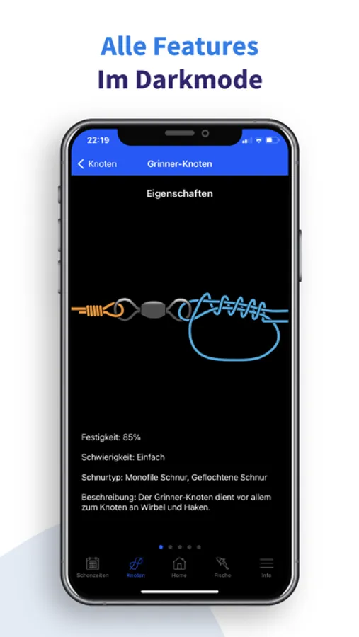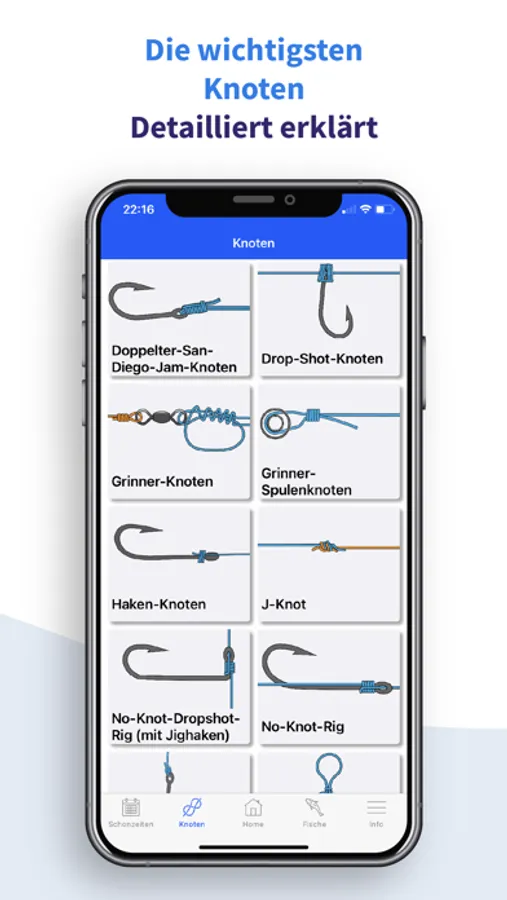 Als Angler solltest du die wichtigsten Knoten für deine Angelmontage beherrschen. Mit über 20 Knoten bist du bestens für jede Situation gerüstet. Egal ob Haken-, Schlaufen- oder Spulenknoten, du wirst mit Bildern und Beschreibungstexten zum Knotenmeister. Wir verschaffen dir einen schnellen Überblick über Festigkeit, Schwierigkeit und den empfohlenen Schnurtyp. Die zusätzliche Zoomfunktion ermöglicht es, sich jede Stelle detailliert anzuschauen.
