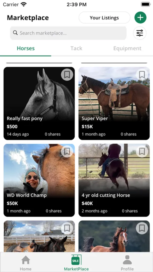In this equine marketplace app, you can buy, sell, and network with other horse enthusiasts using photo and video listings. Includes features for searching by discipline, posting listings, and engaging with the community.