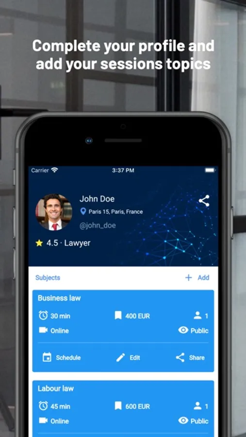 PayMeet Pro helps you to offer your expertise and advisory services and to secure the payment of your fees in advance, it integrates the following features in a single application: