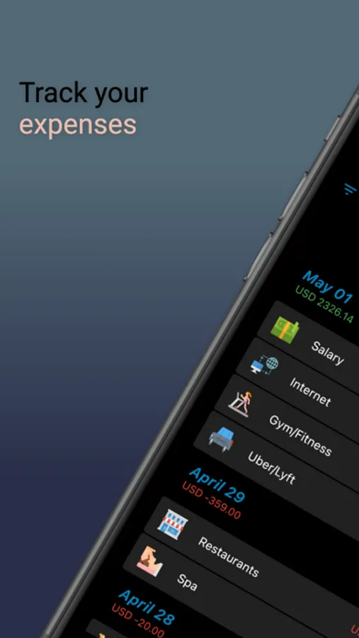 WalletIN - expense tracker ( spending tracker ) also offers organization and categorization features, so you can keep your expenses / spending and income organized. You can create custom categories, such as "education spending" or "store name spending" or "home expenses "and assign transactions or budget to those categories. This makes it easy to see where your money is going and identify patterns in your spending / expenses or your budget.