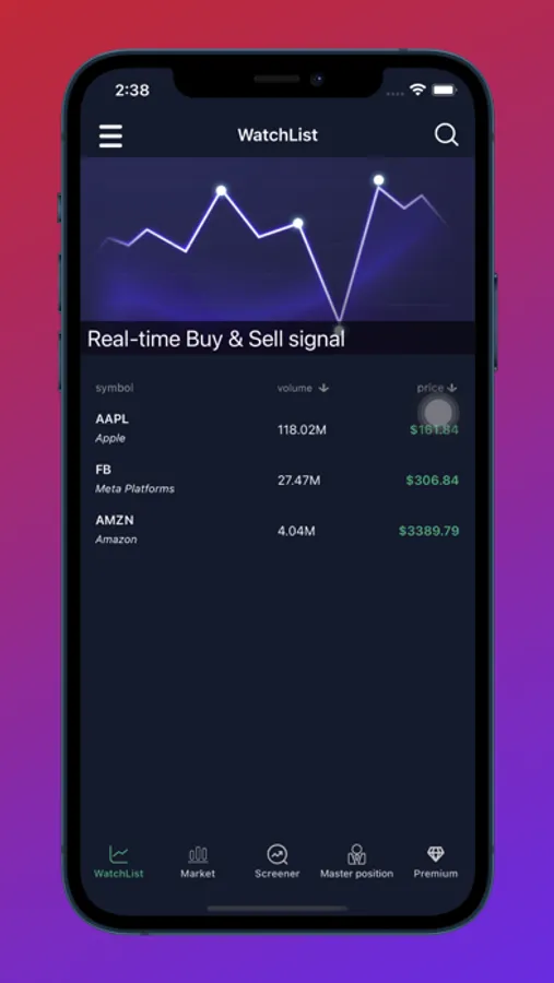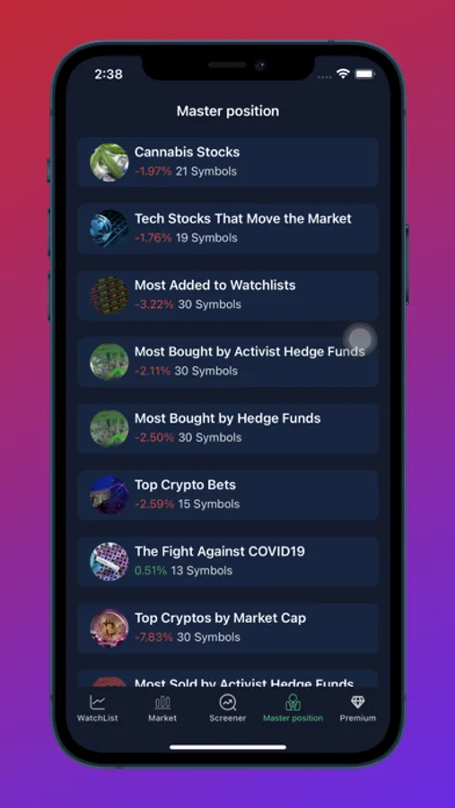 Keep track of the stocks in your own defined watchlist, you can arrange the order by many criteria, like volume, price and more.