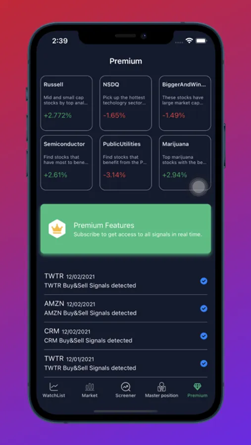 Premium singals provides real-time notifications to customers about stocks support and resistance key levels that generated by our cutting-edge Al