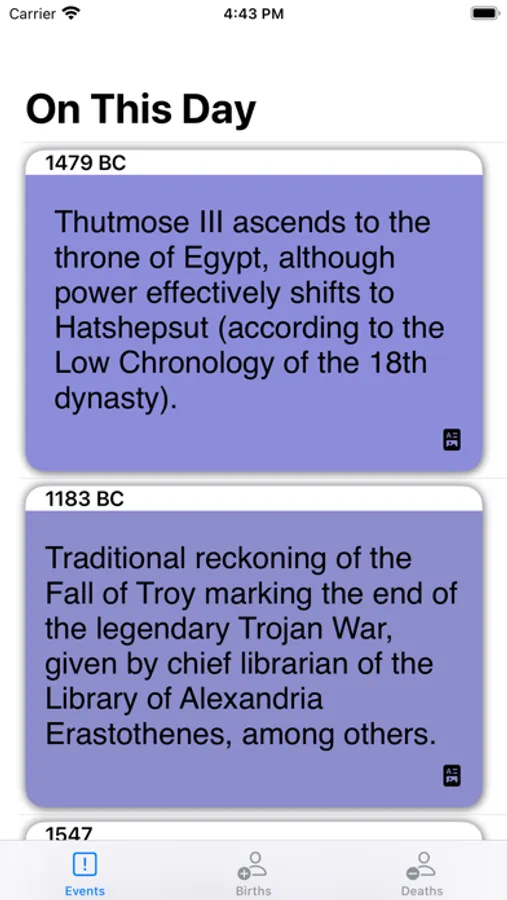 Find out what happened on this day in history. Add a widget to your home screen for three updates a day.