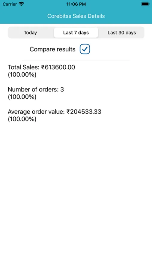 - Check instant details on different three metrics: Sales, number of orders and average order value.