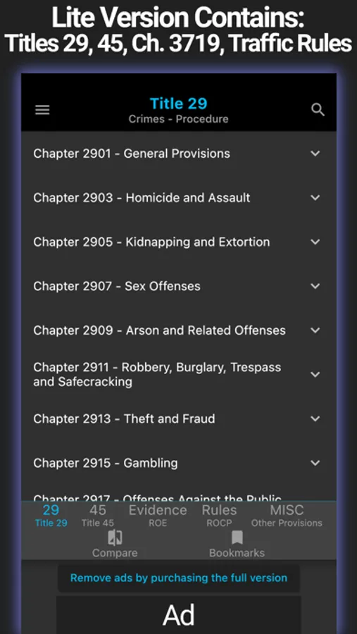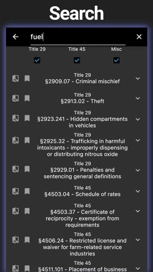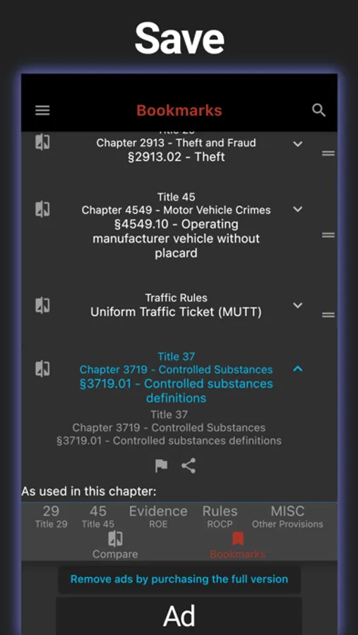 - Bookmarks: Bookmark your favorite statutes for easy reference