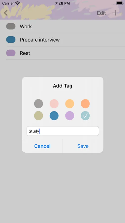 2. Set timer and task tags from the lower right corner. Tags shown here are created in the “Tags” page