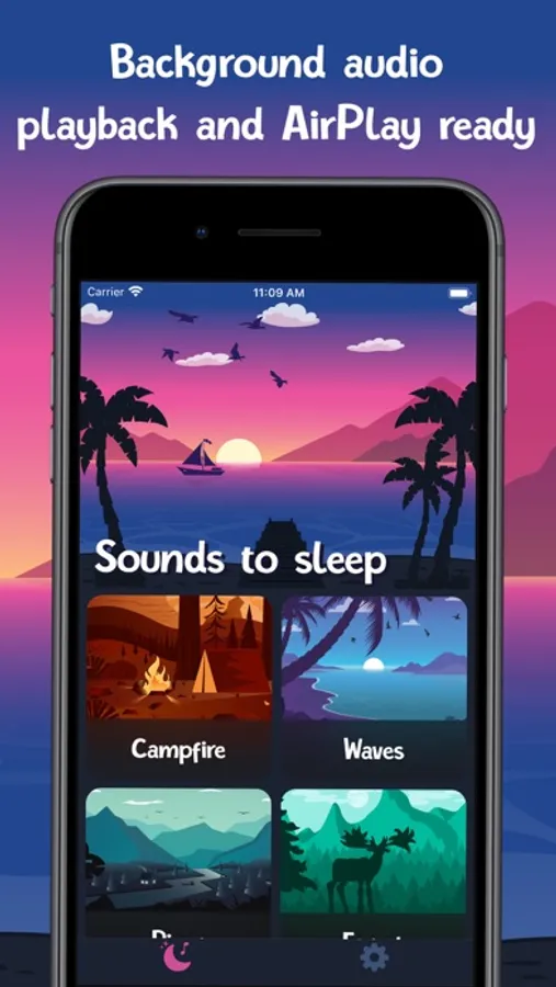 The app supports background playback so you can put away and lock your device while the sound keeps playing. You can play the sounds also on your audio system via Bluetooth or AirPlay.