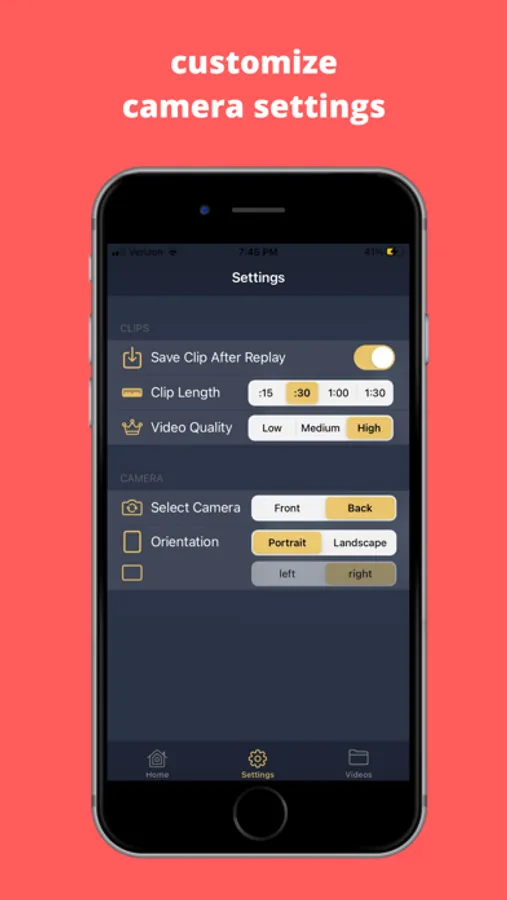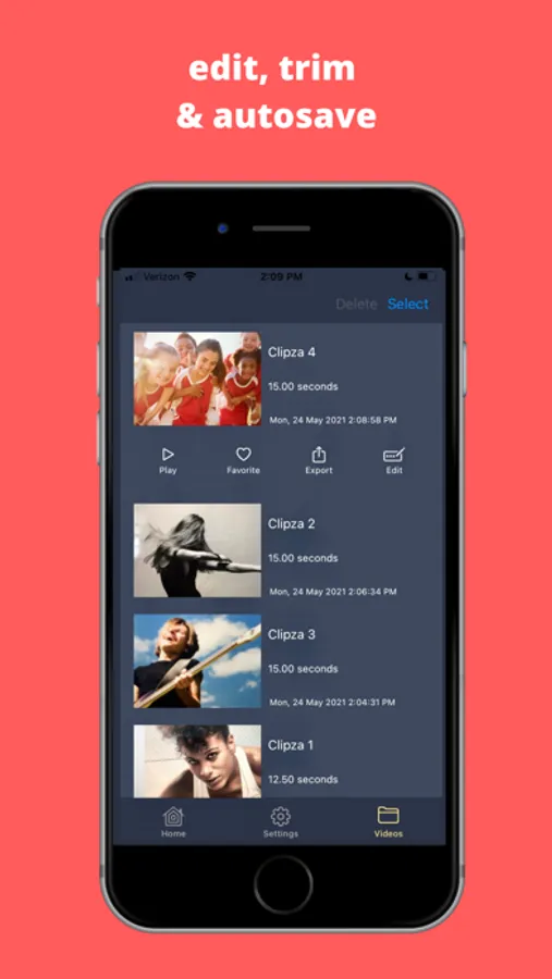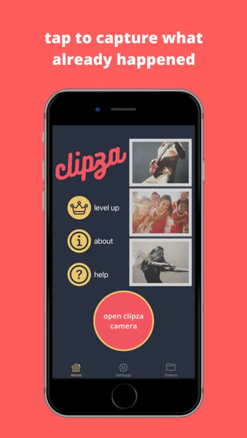 Clipza was created for performers to hone their craft and share their talents. The camera allows you to record what has already happened with one gesture. Presets 15,30,60,90 seconds.