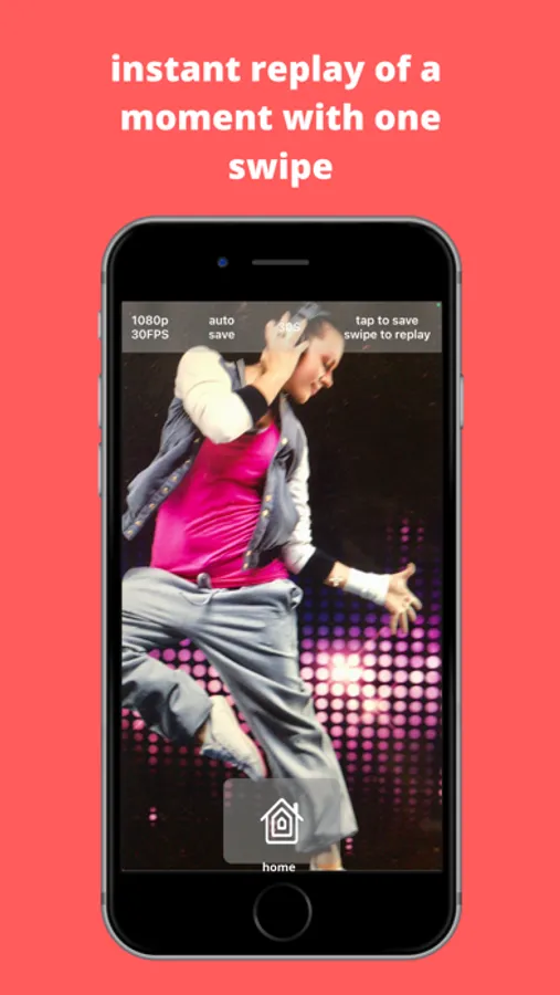 No need to record lengthy sessions. Just open the camera and let it run...then tap to capture the last 15 (or 30, 60, 90) seconds like you would while video-gaming. Or swipe to instantly replay if you are practicing and want to see how you did.