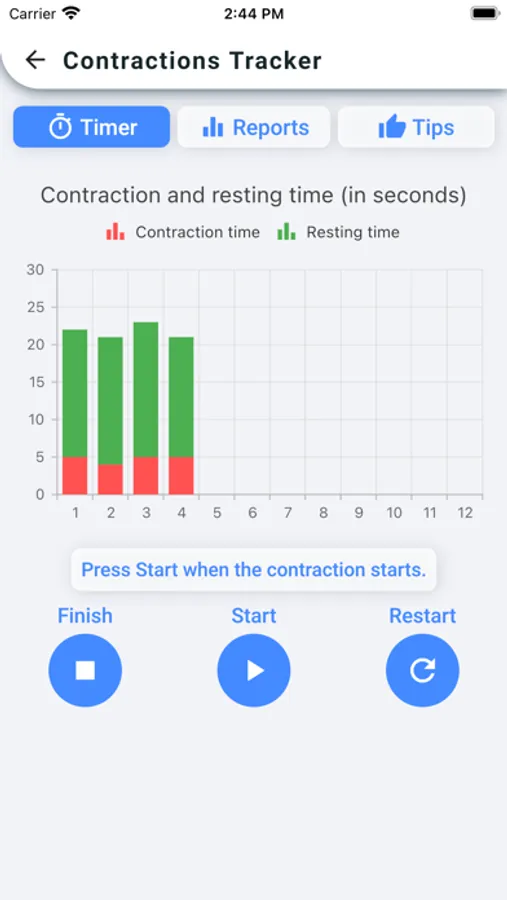 • Contractions Tracker: At the end of the pregnancy you will begin to feel contractions. It is very important to record the duration of contractions and the pauses between them, to know if it is time to go to the hospital.