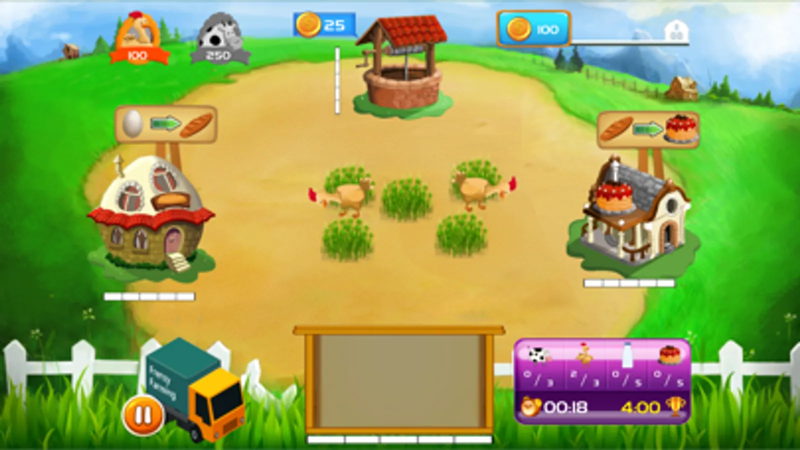 Feed chickens on your farm, collect eggs and earn money by making bread and cake with episodes that get harder as you progress. There are many fun missions waiting for you in each level.