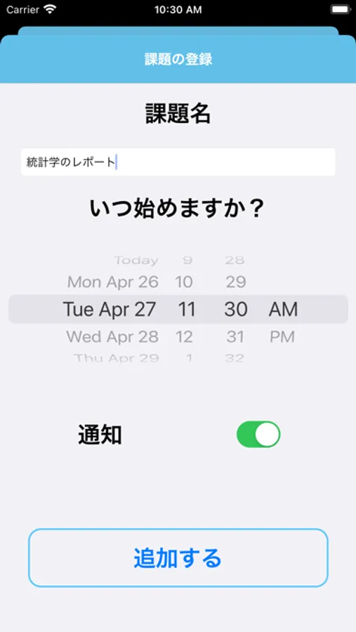さらに、時間を設定することでアプリが知らせてくれるぞ。