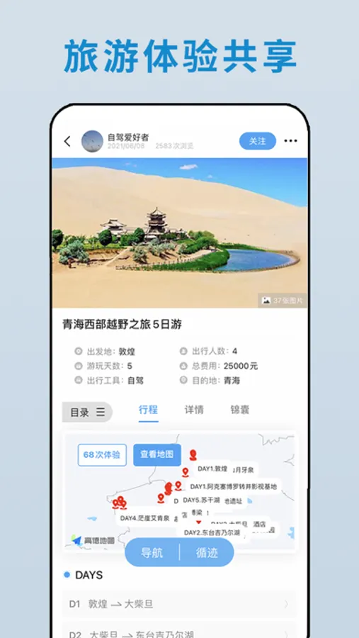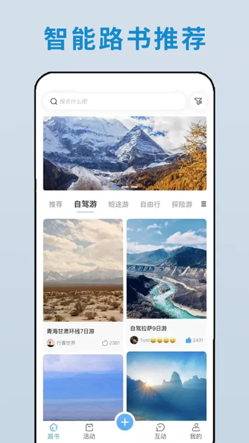 海量自驾旅游路书推荐,旅行小伙伴真实原创分享旅行体验,推荐旅行目的地及周边最适合的自驾路线,并提供详尽的线路旅游信息,旅行达人深度挖掘旅行目的地新奇好玩,必吃、必玩、必住和必逛的打卡点,跟着达人共享体验攻略就能吃好玩好不踩雷!