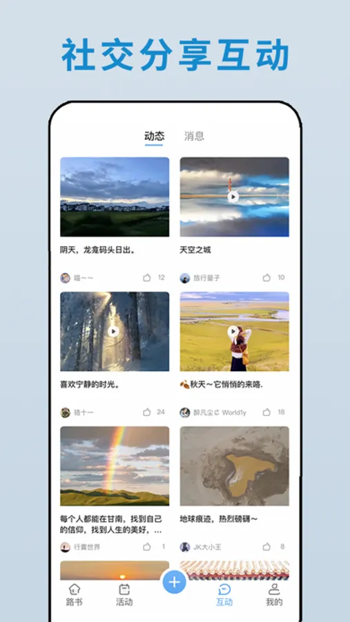 旅行小伙伴们在旅途中实时分享优质原创美图和视频,交通、景点、美食、好店、住宿、旅行服务全都有,用亲身体验及旅行经历,用记录的影像让旅途更精彩!通过分享的旅行瞬间,找到同频共振、兴趣相投的小伙伴,结交新的旅行朋友,交流探讨共同的旅行爱好、兴趣爱好。在路上我们一起帮助更多旅行小伙伴探索目的地的各种旅行乐趣!