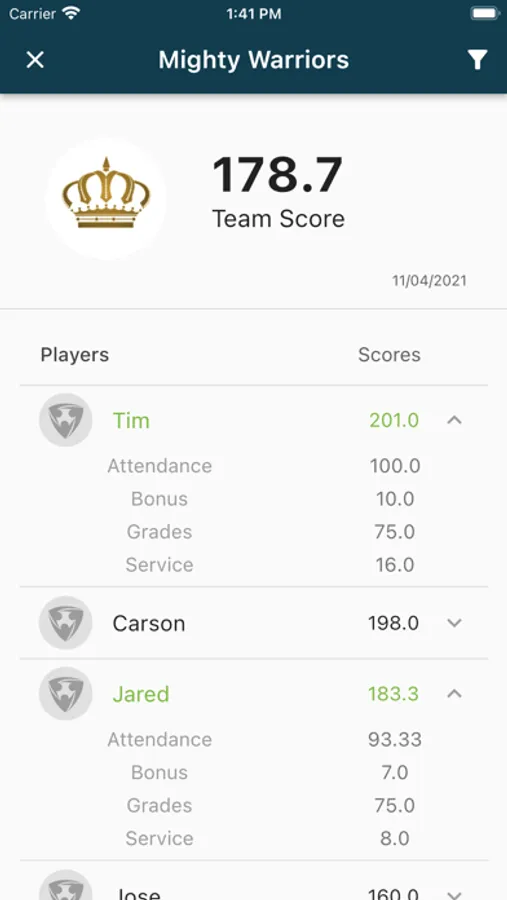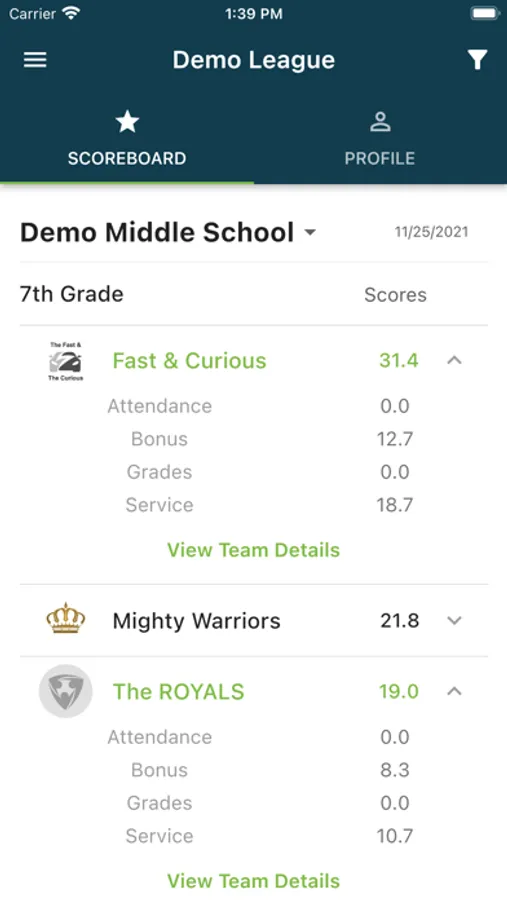 athletes earning points for things such touchdowns and tackles, student teams earn
