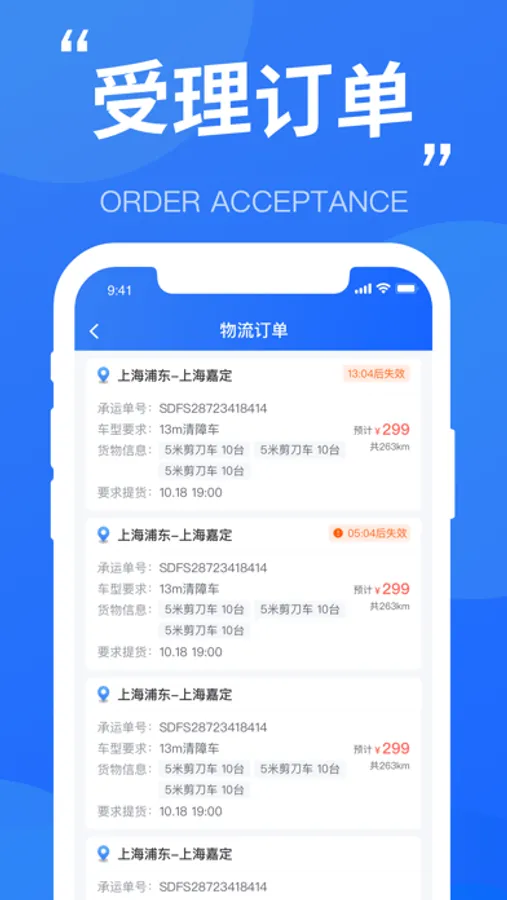 2、物流订单,可以查收下达的物流订单,并作受理和拒绝