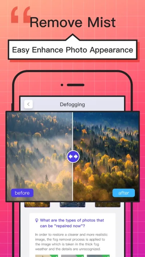 With a single click, you can easily repair old photos, restore the original appearance of the photos, and help you restore the beautiful moments of the years.