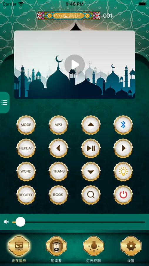 "Speaker Master" this APP can connect the mobile phone with the Quran Devices via Bluetooth.It can control the Quran Devices via mobile phone within a certain range,such as turn on or off the Devices,select reicters or translations,control the light of Devices,set timed shutdown and so on.Using this APP to control the Quran Devices more easily.It is accessory part(remote control) for the Quran Devices.