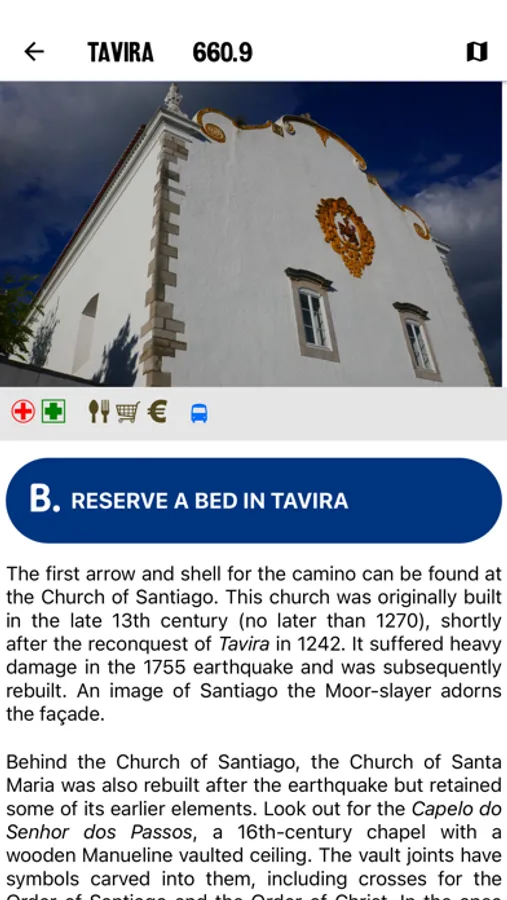 It includes offline maps, camino variants, lodging and sightseeing suggestions, and offline mapping capabilities. It also included the ability for you to leave your own suggestions for pilgrims following behind you.