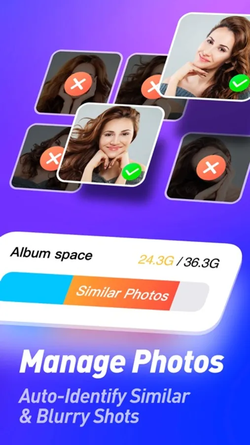 One-tap manage your photos, videos and contacts, easily release storage space, keep your phone in its best condition all the time.