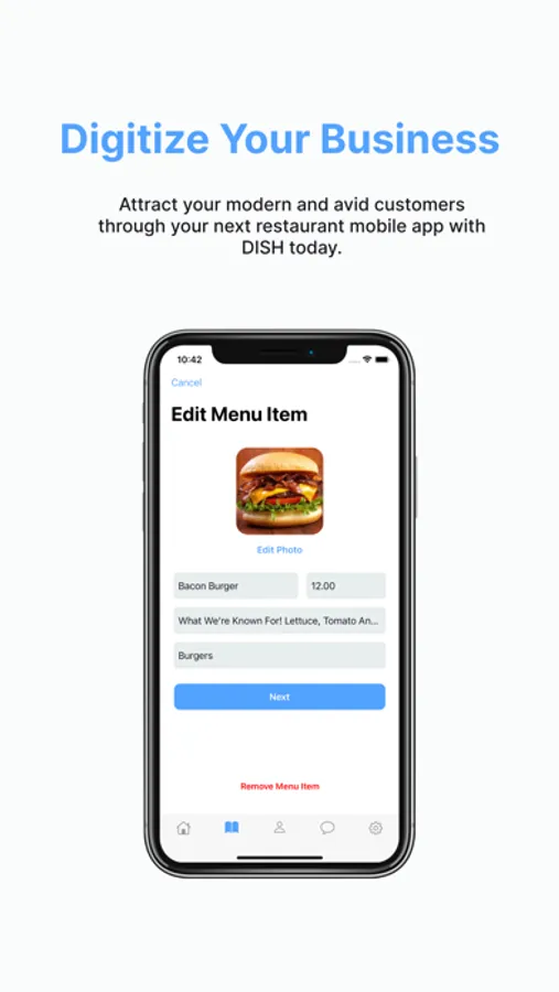 DISH Connect is for restaurant owners who are interested in digitizing their business with mobile apps. With the DISH Connect App, they can get started in the digital restaurant business by managing their menu, implementing a rewards program, obtaining reservations, adding locations, promotions, and more. Using the mobile application strategy attracts a younger, more digital audience to their customer base, and increases business sales.