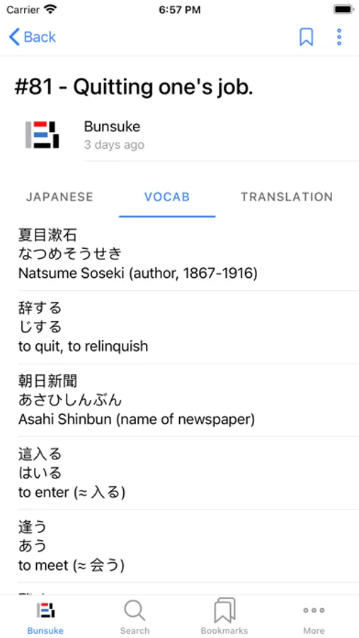 Subscribers to my free newsletter receive one or two Japanese sentences with translation, a vocabulary list, and grammar explanation, daily.
