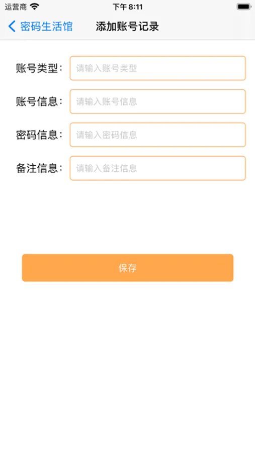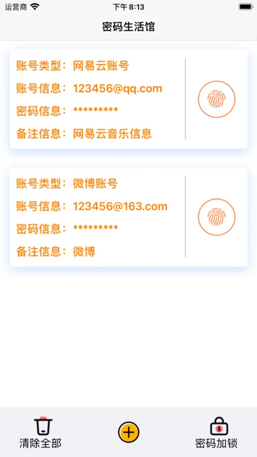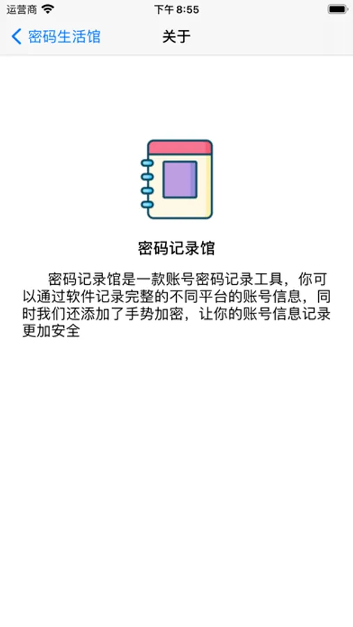 码记录馆是一款账号密码记录工具,你可以通过软件记录完整的不同平台的账号信息,同时我们还添加了手势加密,让你的账号信息记录更加安全