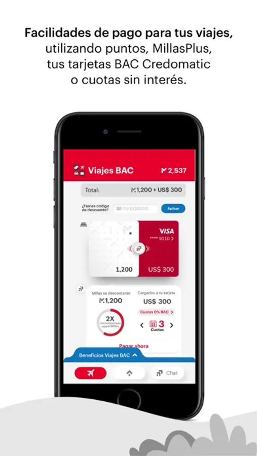 Paga tus viajes de manera parcial o total con Miles, y si no son suficientes, combínalas con tus tarjetas BAC Credomatic. También puedes pagar con cuotas 0% de interés y así vivir la aventura de tus sueños.