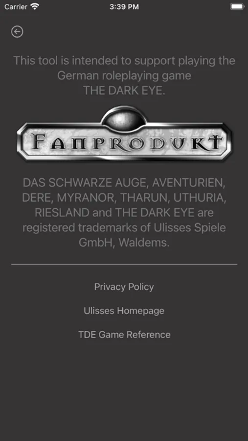 DAS SCHWARZE AUGE, AVENTURIEN, DERE, MYRANOR, THARUN, UTHURIA, RIESLAND and THE DARK EYE are registered trademarks of Ulisses Spiele GmbH, Waldems.
