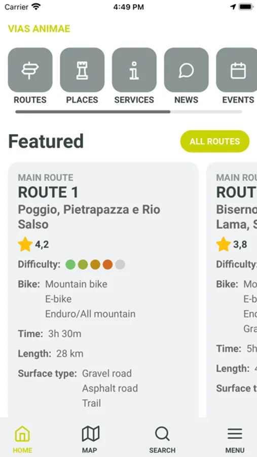 The App accompanies you step by step along the 16 routes present, describing the way to follow, the difficulties and the duration...but it doesn't stop there!