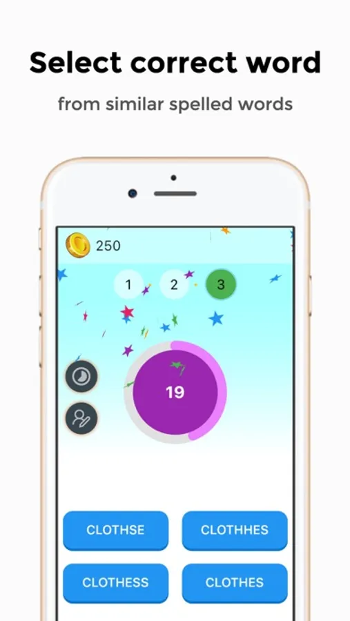Play our spelling game to improve your English spelling skill! Choose the correct spelling to earn scores and conquer the levels. Get coins for winning the level. This is a fun, fast-paced Word game that can help you improve your spelling and thinking at the same time. If you need brain exercise and logic puzzle to keep yourself sharp, try our game now!