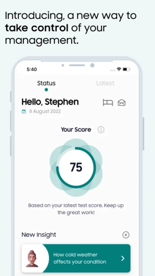 We track the most important aspects of your condition. Using everything from medication adherence to symptoms, we create a personalized control score. A score that gives you unparalleled insight into your condition. You can also super-charge this insight by connecting any wearable you might have - Apple Health, FitBit, Oura (we integrate with them all)