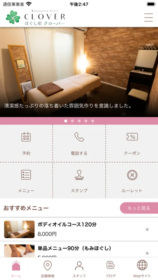 アプリを通して「ほぐし処 クローバー」の新着情報やお得な情報をリアルタイムで受け取ることができます。