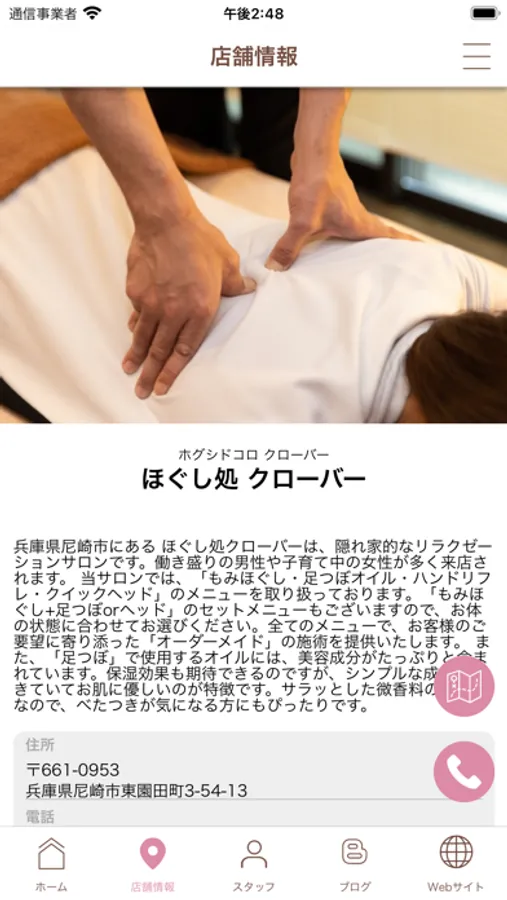 店舗のマップが表示され、地図アプリとも連携しているので、初めてのご来店の時も簡単に見つけることができます。