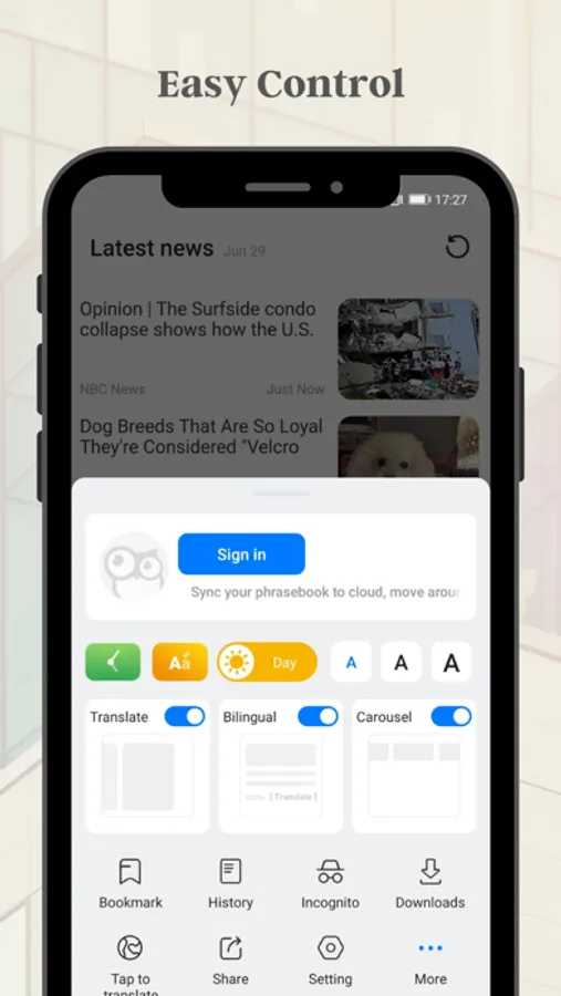 Word and phrase translation from NextWord Browser gives you a familiar interface fortified with a range of invaluable English learning features. With our secure browsing app, you can: