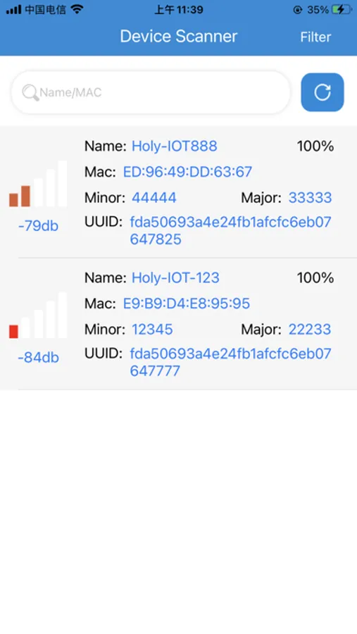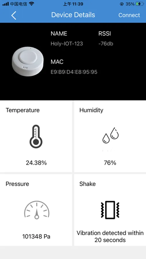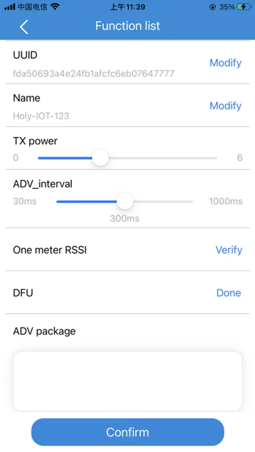 A Bluetooth beacon app, which can read the broadcast information of the device and modify the broadcast parameters,And read the current environment temperature, pressure, humidity.