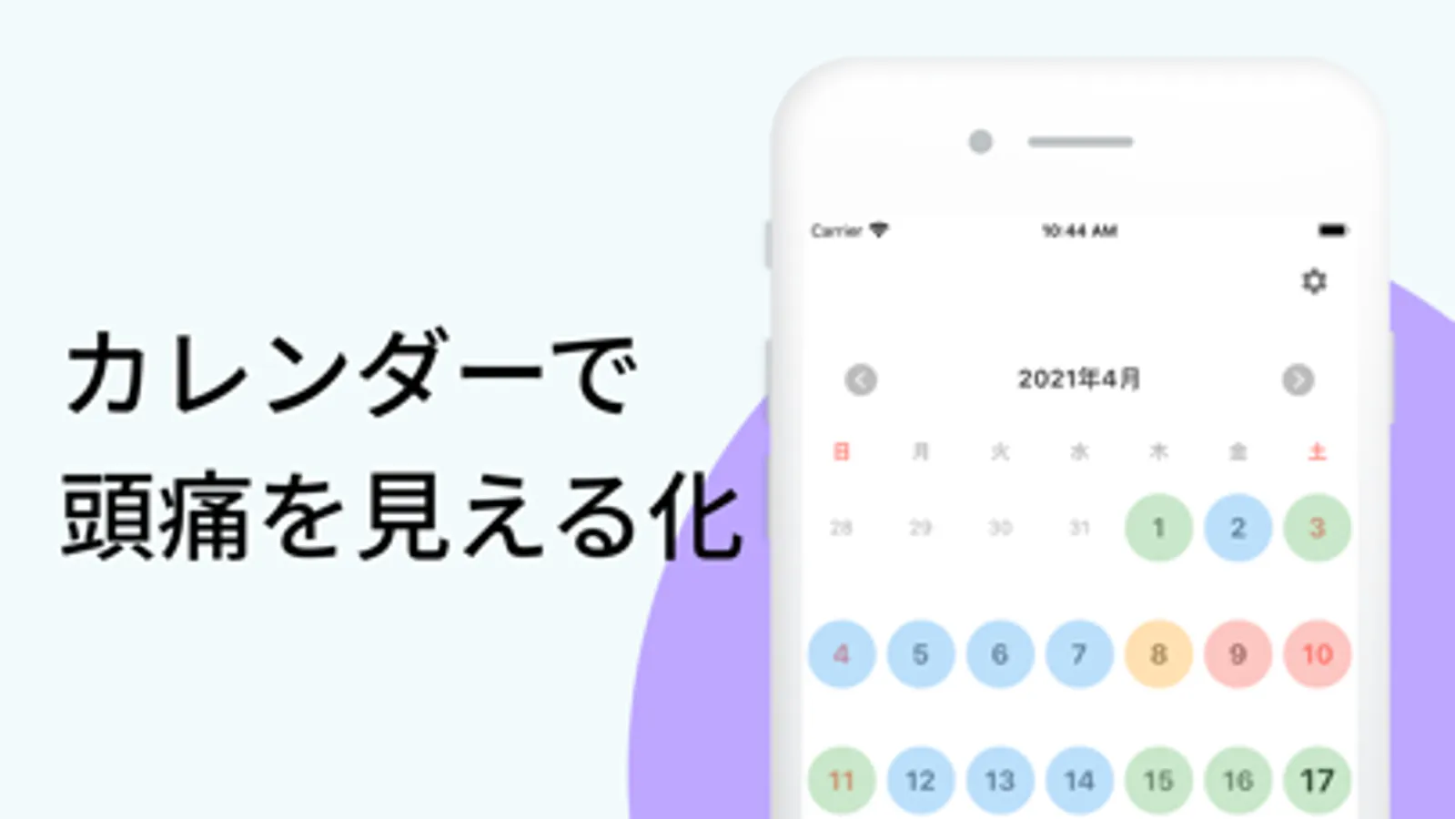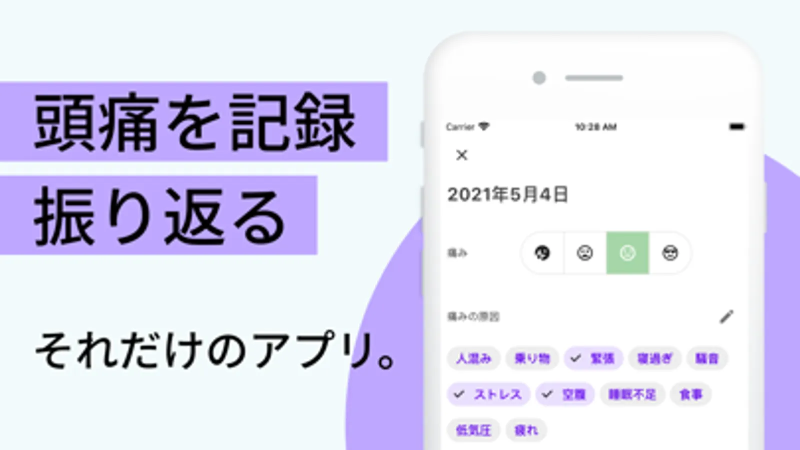 カレンダーから日にちを選択して、頭痛の強さ・原因をサクッと記録。