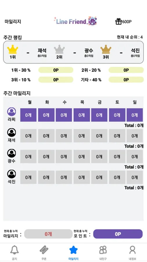 ●각 쿠폰 적립과 현재 내 순위를 확인할 수 있고