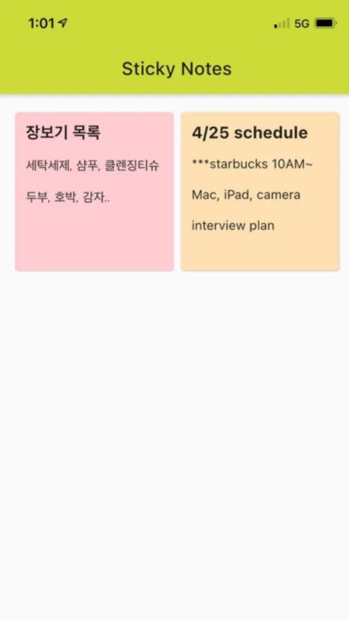 간단한 메모부터 장문의 메모까지 가능한 스티커형 노트, 메모장입니다. 노트마다 다른 색상을 지정할 수 있습니다. 작성순서대로 아기자기한 색상으로 정렬되는 깔끔한 스타일의 노트입니다.