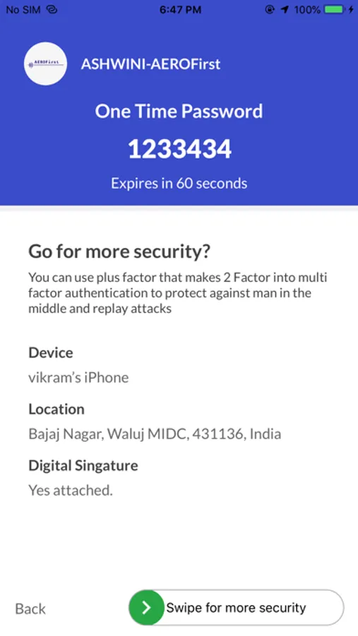 After a one-time registration process using Absolute Token Verify, you may experience a modified login experience to your Absolute Token apps, based on your organization's settings.